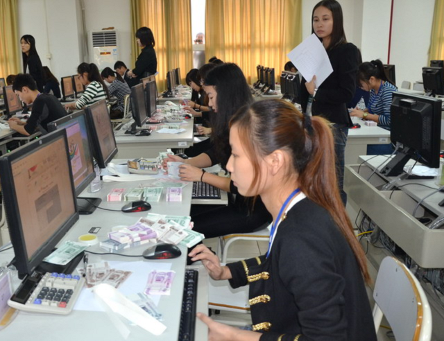 在開幕式上,萬存知、王曉敏等領(lǐng)導(dǎo)致辭,裁判員和選手進(jìn)行宣誓。上午的賽項為銀行綜合業(yè)務(wù)技能比賽,在3個小時的比賽中選手需要在仿真業(yè)務(wù)競賽平臺上分別獨立完成銀行日初業(yè)務(wù)處理、個人儲蓄業(yè)務(wù)處理、特殊業(yè)務(wù)處理、對公存貸業(yè)務(wù)處理、公司結(jié)算業(yè)務(wù)處理、聯(lián)行交換業(yè)務(wù)處理、代收代發(fā)業(yè)務(wù)處理、信用卡業(yè)務(wù)處理等。下午的賽項為單項業(yè)務(wù)技能比賽,每隊三名選手分別參加點鈔、傳票算、字符輸入中的一項業(yè)務(wù)技能比賽。最終,浙江金融職業(yè)學(xué)院、廣州番禺職業(yè)技術(shù)學(xué)院等8個代表隊獲得團(tuán)體一等獎,安徽商貿(mào)職業(yè)技術(shù)學(xué)院等17所院校、廣東工程職業(yè)技術(shù)學(xué)院等25所院校的代表隊分別獲得團(tuán)體二、三等獎。