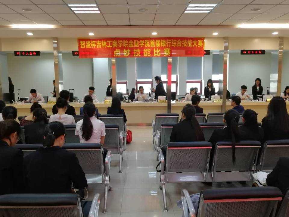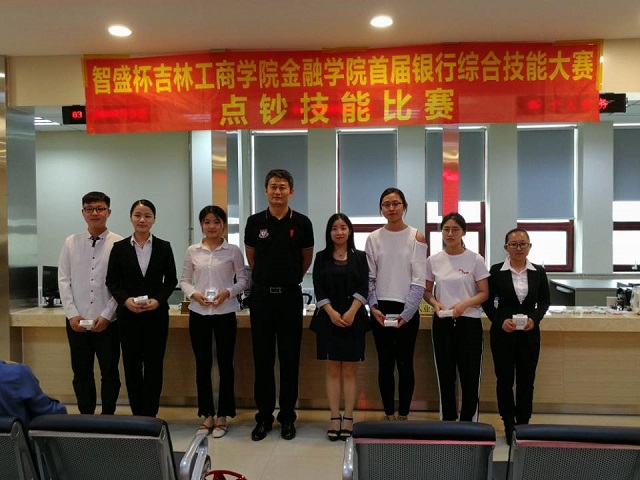 為加強(qiáng)校企合作,增強(qiáng)金融學(xué)專業(yè)學(xué)生的崗位實(shí)踐能力,推進(jìn)金融學(xué)院的實(shí)踐教學(xué)改革,貫徹學(xué)校積極開展各級各類學(xué)科競賽活動的要求,2018年6月,在吉林工商學(xué)院金融學(xué)院成功舉辦首屆“智盛杯”銀行綜合技能大賽暨點(diǎn)鈔技能比賽。