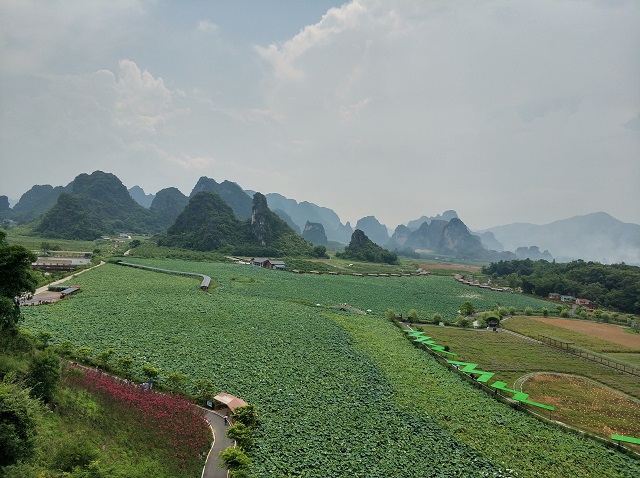 最后一天的早上我們來到了具有小桂林之稱的九龍小鎮(zhèn)。千畝花海爛漫盛開,空氣中彌漫著花的香味。大家一路欣賞優(yōu)美迷人的自然風(fēng)光,忘卻了日常工作的繁忙,盡情享受旅游的歡樂和愉悅。
