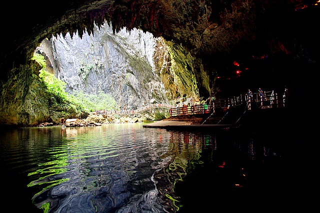 洞天仙境“天坑”是一種世界罕見的喀斯特地形獨有的地質(zhì)景觀—喀斯特溶洞。