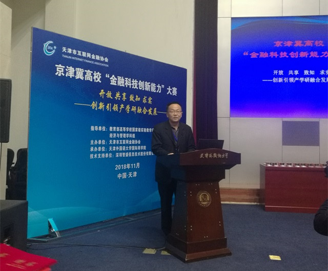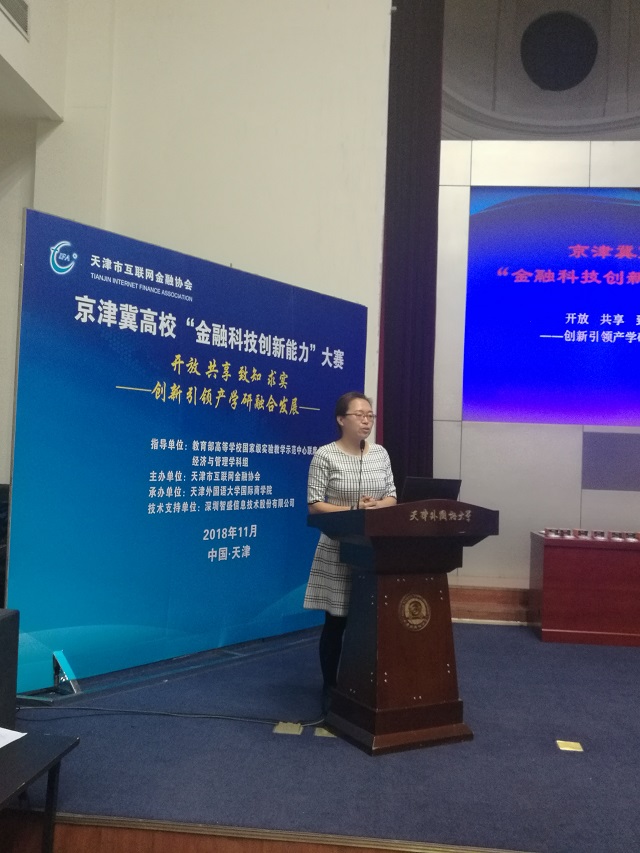 2018年11月,京津冀金融科技創(chuàng)新能力大學暨2018年“智盛杯”全國大學生金融科技創(chuàng)新能力大賽京津冀地區(qū)選拔賽在天津外國語大學國際商學院拉開帷幕。