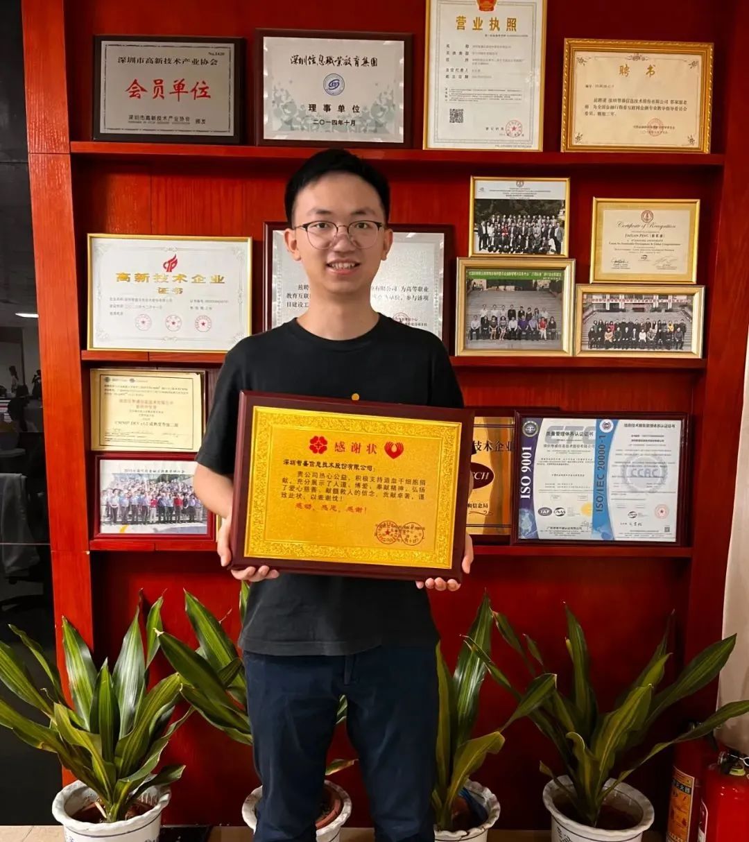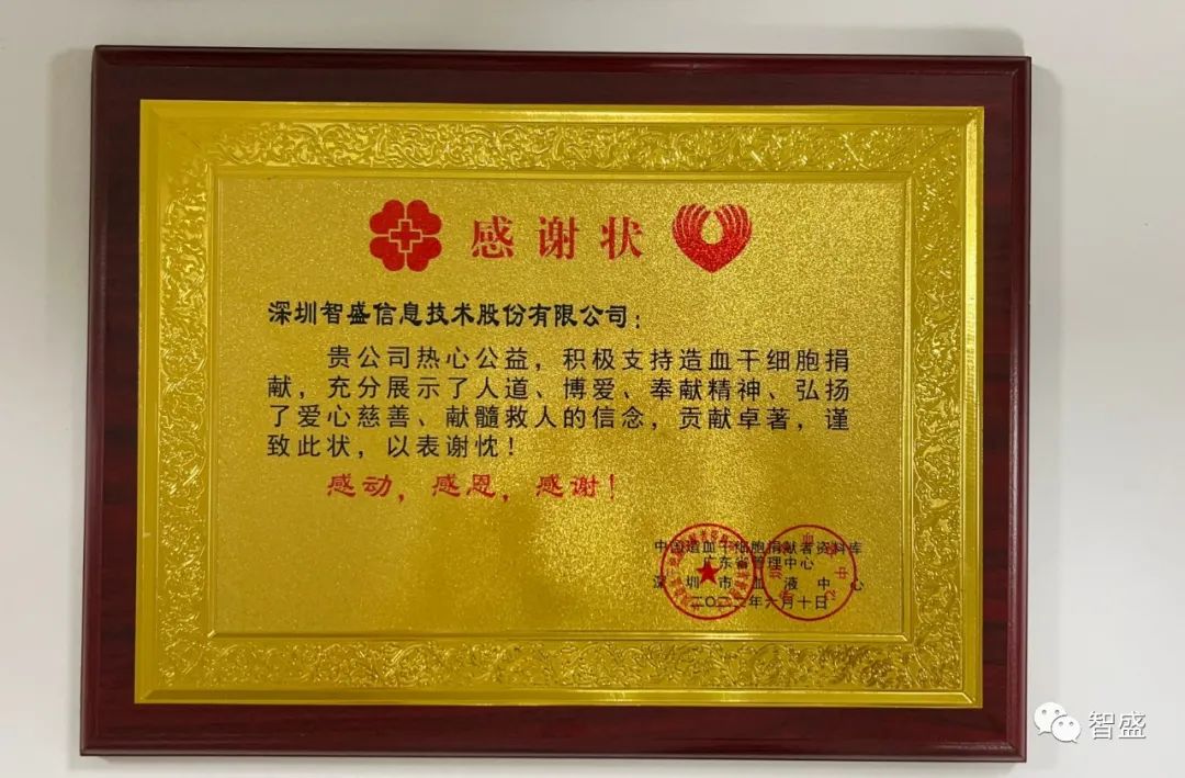 當(dāng)日,深圳市血液中心為韋宗杰和深圳智盛信息技術(shù)股份有限公司頒發(fā)了榮譽(yù)證書(shū)和感謝狀。